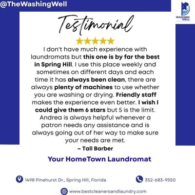 With plenty of parking and 2 convenient locations in Spring Hill, we’re always close by when laundry needs to get done. Cleanliness, technology, and top-tier service come together here — making us your go-to destination for an exceptional self-service laundry experience.